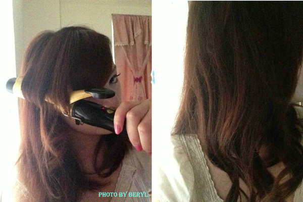 連著剛剛的髮束,再綁一束頭髮,用編髮棒重覆剛剛的步驟,再翻一次髮束
