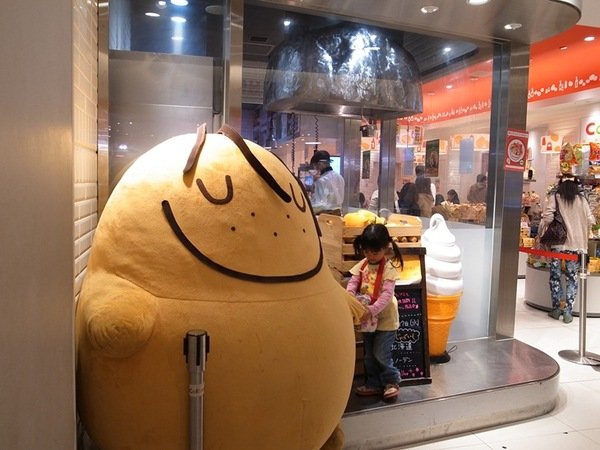 裡面還有現炸馬鈴薯片的CALBEE商店,門口擺放了巨大的馬鈴薯